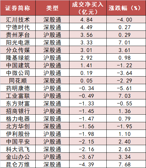 6、沪股通和深股通前十大活跃股