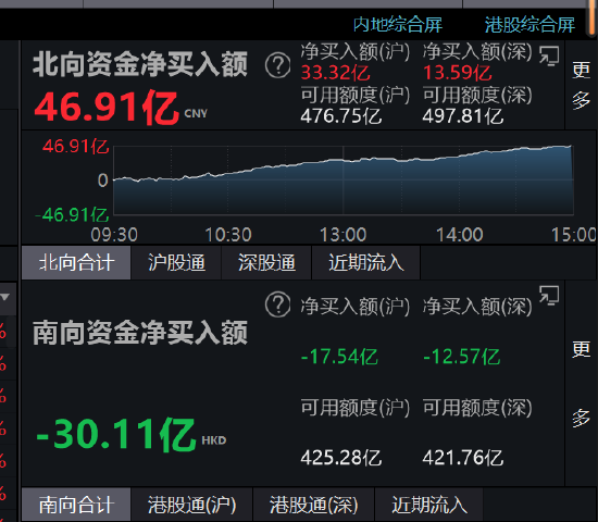 收评:北向资金净流入46.91亿元,沪股通净流入33.32亿