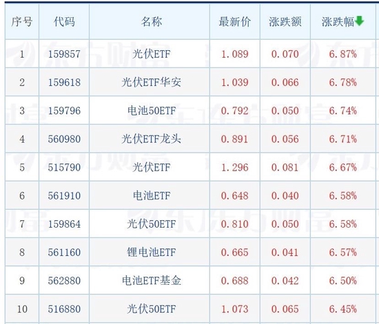 多只光伏、锂电池相关ETF集体大涨逾6%。