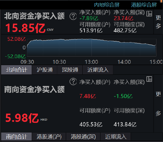 收评:北向资金小幅净买入15.85亿元 早盘一度净买入超52亿元