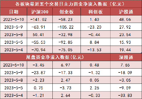 沪深300今日主力资金净流出141.02亿元,创业板净流出58.23亿元。沪股通净流入48.06亿元,深股通净流入7.65亿元。
