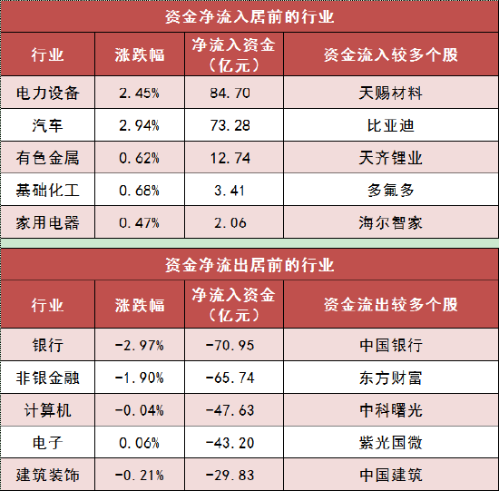 3、电力设备等行业实现净流入
