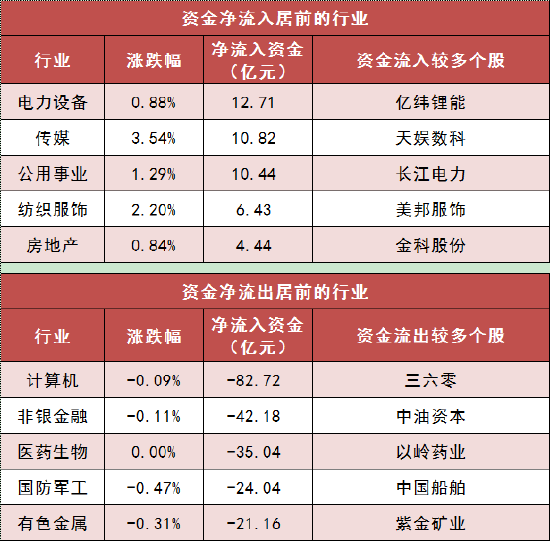 【11日资金路线图】两市主力资金净流出196亿元 电力设备等行业实现净买入