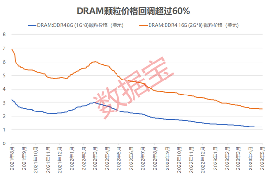据Trend Force集邦咨询报告显示,2022年NAND Flash全球市场规模同比下跌12.5%,平均单价同比下跌32.6%;2022年DRAM全球市场规模同比下跌13.2%,平均单价同比下跌16.5%。进入2023年,存储器价格仍在低位徘徊,统计显示,16GB DRAM颗粒现货价格由2021年8月的6.89美元下降至最新的2.55美元,降幅达到62.97%,8GB DRAM颗粒现货价格由3.2美元下降至1.2美元,降幅达到62.5%。