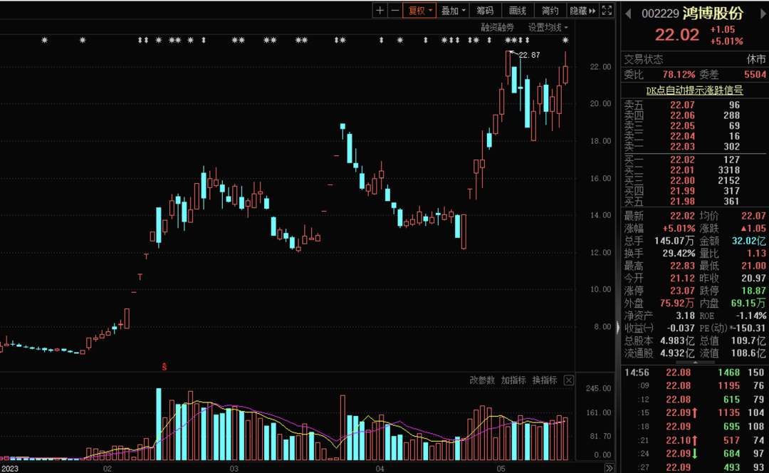 鸿博股份系AI概念股,号称与英伟达合作,受到资金的青睐和热捧,期间多次登上龙虎榜。今年以来,该股累计涨幅超2.3倍,最新市值109.7亿元,最新一期股东户数8.776万户。