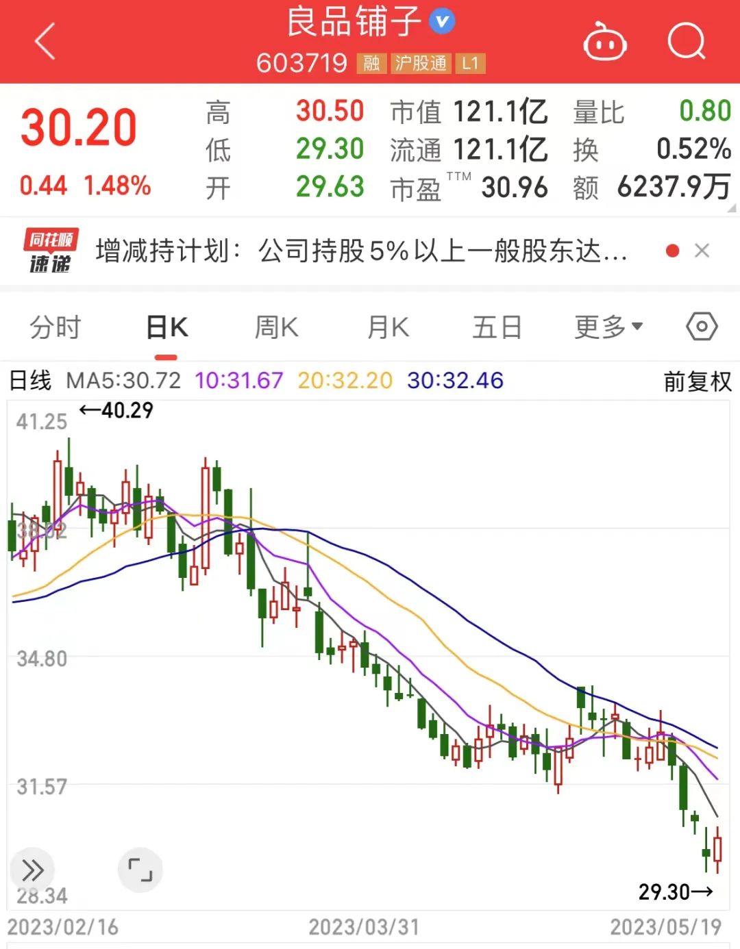 值得一提的是,良品铺子于5月19日公告称收到珠海高瓴天达投资中心、HH LPPZ(HK)Holdings Limited、宁波高瓴智远企业管理合伙企业系一致行动人的《减持计划实施结果告知函》。知名投资机构高瓴系资本对公司的减持计划时间届满,累计减持公司股份约224万股,减持总金额约7316.51万元。