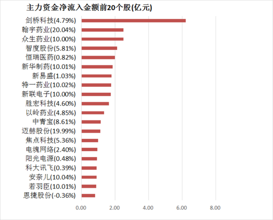 4、主力资金净流入金额前20个股