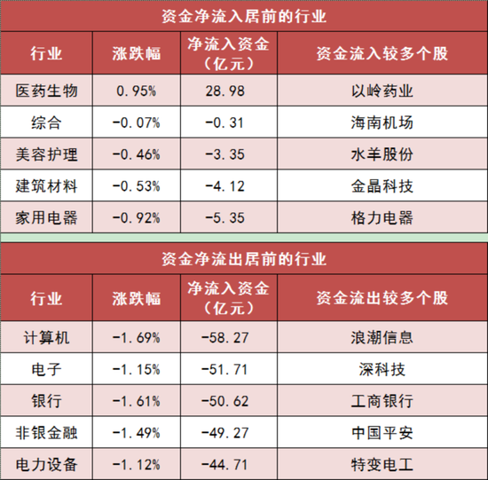 3、医药生物行业实现净流入
