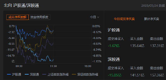 5月24日消息,截至沪深股市午间收盘,北向资金净卖出17.25亿元,沪股通净卖出1.67亿元,深股通净卖出15.85亿元。
