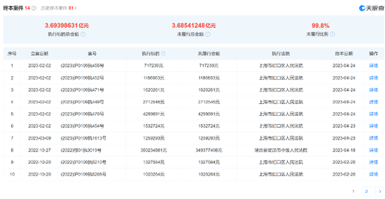 天眼查网站信息也显示,上海宝银创赢投资管理有限公司涉及多起案件,法院判决的执行标的总金额高达3.69亿元,未履行比例达99.8%。