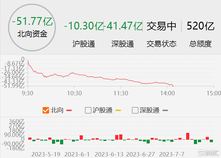 格隆汇7月24日丨北上资金净卖出A股超50亿元。