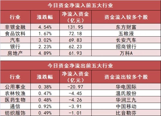 申万一级行业中,25个行业实现资金净流入,其中非银金融行业净流入131.95亿元居首。