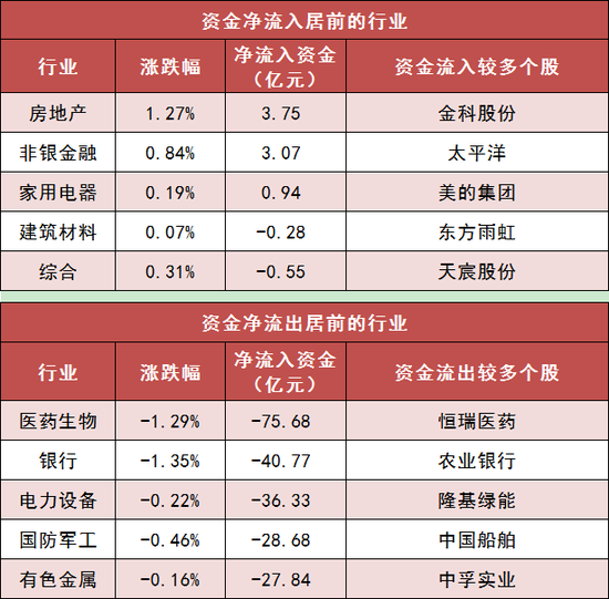 【2日资金路线图】两市主力资金净流出250亿元 房地产等行业实现净流入