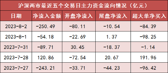 今日沪深两市主力资金开盘净流出80.11亿元,尾盘净流出10.54亿元,两市全天资金净流出250.49亿元。