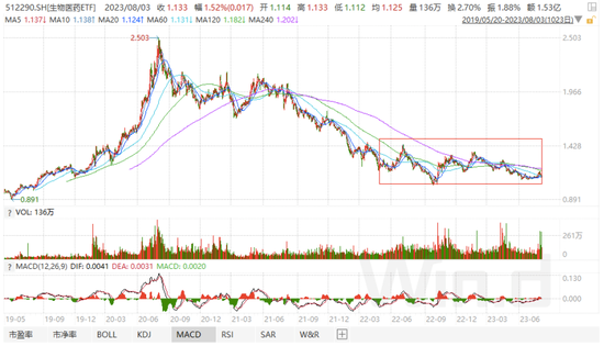 目前医药板块的股价长期处于底部位置,以生物医药ETF(512290)为例,自去年4月下跌势头放缓之后,生物医药ETF的价格就在底部区域反复震荡,目前正处于磨底阶段。估值端,目前生物医药板块的PE估值约为32倍,历史上看处于15%分位数的位置,投资安全边际性较高。另外从已披露的中报预告来看,受益于诊疗复苏,医药板块的业绩也呈现恢复态势,因此短期也无需过度悲观。后续可继续关注生物医药ETF(512290)、创新药沪深港ETF(517110)等相关标的。