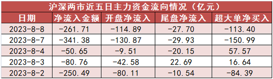 今日沪深两市主力资金开盘净流出114.89亿元,尾盘净流出27.7亿元,两市全天资金净流出261.71亿元。