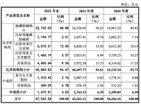 报告期内,力捷迅主要化学药制剂产品胞磷胆碱钠片实现收入分别为1.49亿元、2.43亿元及3.28亿元,占公司主营业务收入的40.81%、56.23%及 68.88%,占比呈逐渐增长趋势,是公司主营业务收入的主要来源,主要产品相对集中。