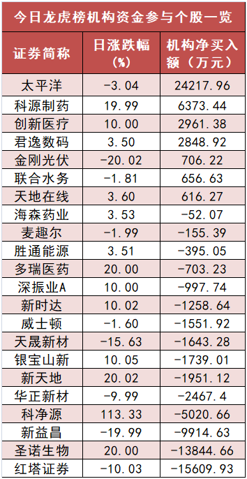 盘后龙虎榜数据显示,机构现身22股,其中太平洋等7股现机构资金净买入,威士顿等15股呈现机构资金净卖出。