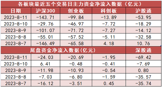 沪深300今日主力资金净流出143.71亿元,创业板净流出99.84亿元,科创板净流出13.89亿元。沪股通净流出53.95亿元,深股通净流出69.42亿元。