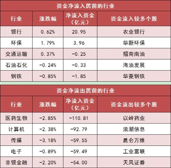 3、银行等行业实现净流入