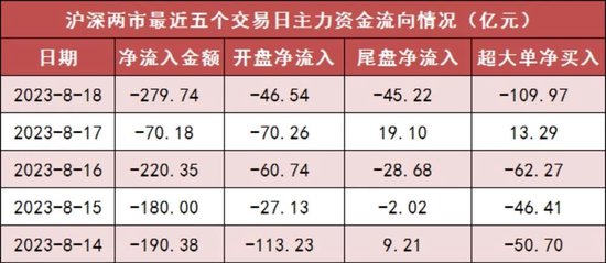 今日沪深两市主力资金开盘净流出46.54亿元,尾盘净流出45.22亿元,两市全天资金净流出279.74亿元。