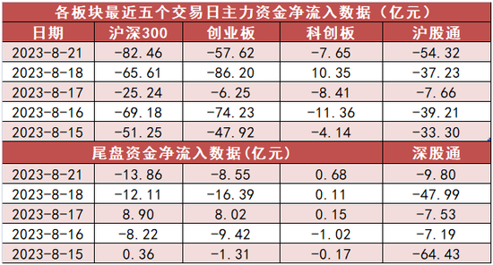 沪深300今日主力资金净流出82.46亿元,创业板净流出57.62亿元,科创板净流出7.65亿元。沪股通净流出54.32亿元,深股通净流出9.8亿元。