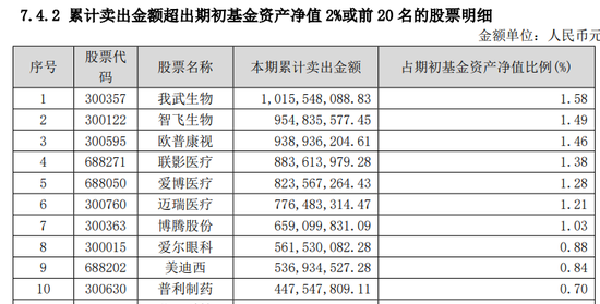 而中欧医疗健康上半年主要的卖出标的为我武生物、智飞生物、欧普康视、联影医疗等。
