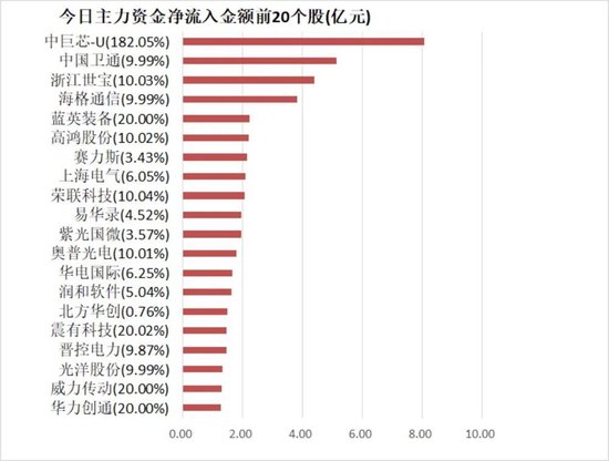 4、中巨芯-U净流入8.08亿元居首