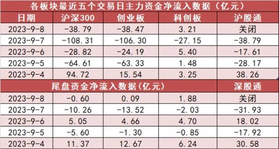 沪深300今日主力资金净流出38.79亿元,创业板净流出38.47亿元,科创板净流入3.21亿元。
