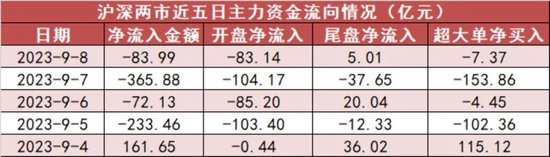 今日沪深两市主力资金开盘净流出83.14亿元,尾盘净流入5.01亿元,两市全天资金净流出83.99亿元。