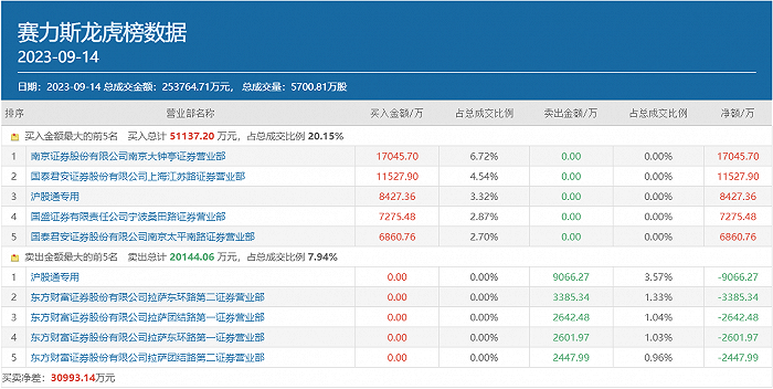 具体来看,知名游资小鳄鱼的常用席位南京证券南京大钟亭以高达1.7亿元的买入额高居赛力斯买方榜首;章盟主的常用席位国泰君安证券上海江苏路居于买方第二位,买入金额为1.15亿元;宁波桑田路的常用席位国盛证券宁波桑田路位列买方第四位,买入金额为7275.48万元;另有作手新一的常用席位国泰君安证券南京太平南路也榜上有名,买入金额为6860.76万元。