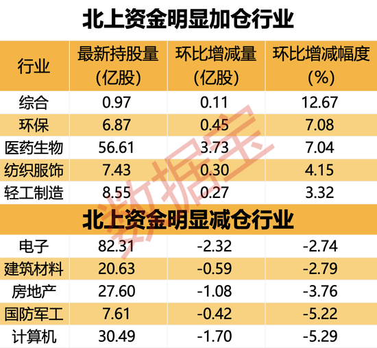 分行业来看,31个行业中,14个行业北上资金持股量增长,综合、环保、医药生物、纺织服饰、轻工制造5个行业持股量环比增幅在3%以上。北上资金减持的行业普遍大幅下跌,计算机、国防军工、房地产行业减持幅度居前,行业指数均有明显跌幅。