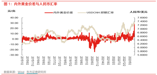 东方证券表示,以9月14日USDCNH7.29元/美元汇率计算,内外黄金价格的价差显著扩展到29元/克,创出自2015年汇改以来历史新高。在不考虑运输费用和交易成本的情况下,隐含的美元兑人民币汇率一度达到7.76元/美元,远远低于当前实际的7.29元/美元水平。