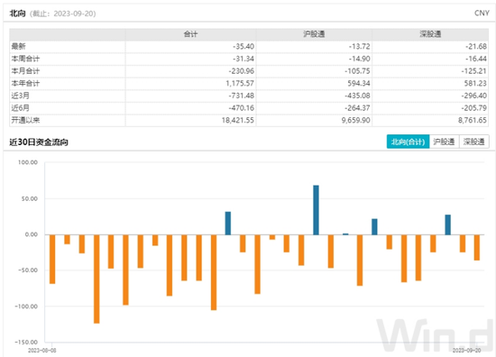 盘面上,算力概念股开盘冲高,机器人概念股盘中拉升。此外养殖和贵金属板块坚挺。下跌方面,旅游股集体调整。总体上个股跌多涨少,两市超3800只个股下跌。沪深两市9月20日成交额5732亿,较上个交易日缩量618亿,成交金额跌破6000亿续创年内新低。北向资金全天净卖出35.4亿元,其中沪股通净卖出13.72亿元,深股通净卖出21.68亿元。