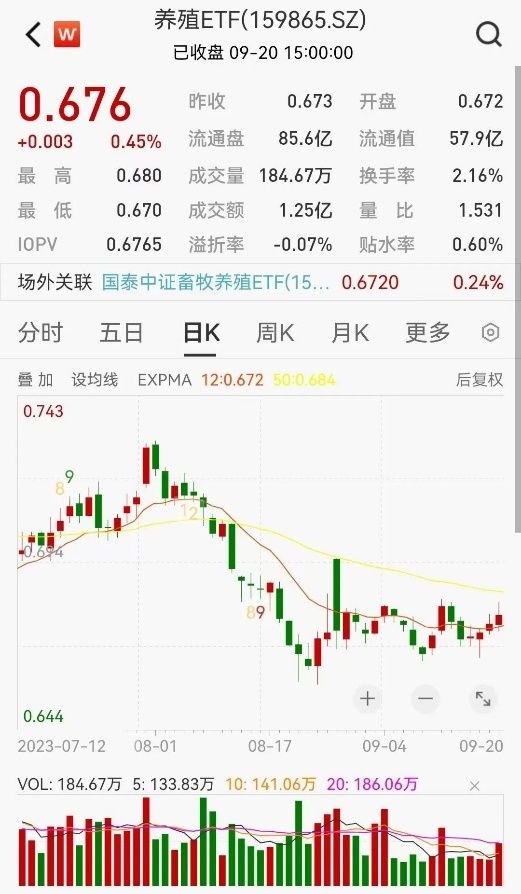 9月20日养殖板块表现亮眼,养殖ETF(159865)逆势上涨0.45%。