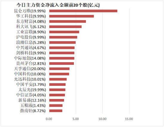 今日沪深两市主力资金开盘净流出6.85亿元,尾盘净流入32.35亿元,两市全天资金净流入161.51亿元。