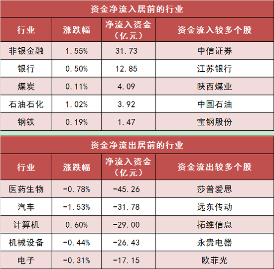 今日沪深两市主力资金开盘净流出74.71亿元,尾盘净流入8.14亿元,两市全天主力资金净流出137.73亿元。