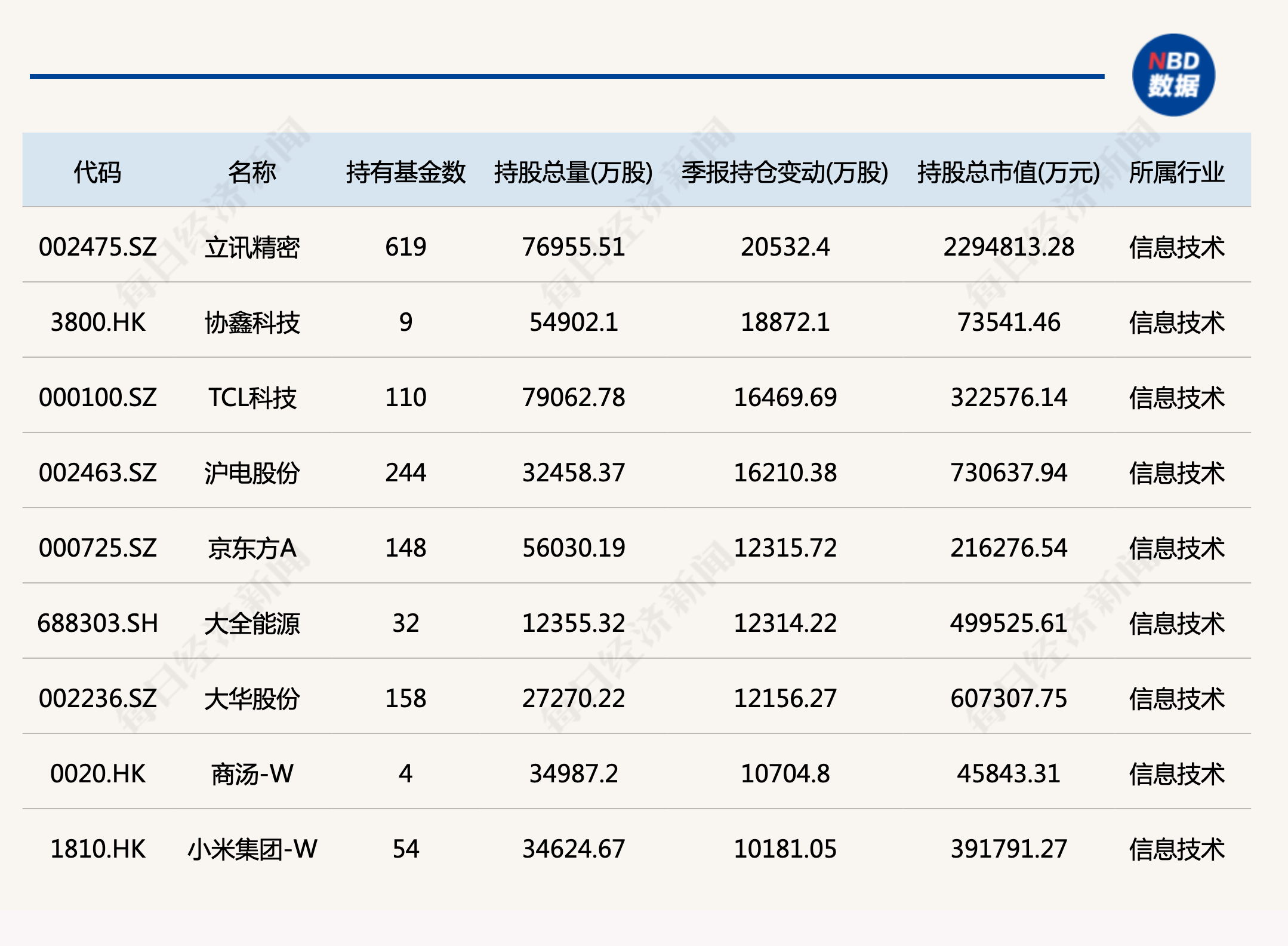 除了前20大重仓股,再来看有哪些个股在三季度被基金大举增持?
