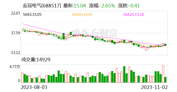 金冠电气11月2日发布消息,10月31日,公司接待兴业证券等多家机构调研,接待人员副总经理、财务总监、董事会秘书 贾娜,证券事务代表 刘艳娜,通过电话会议进行。