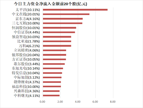 4、太平洋主力资金净流入7.37亿元居首