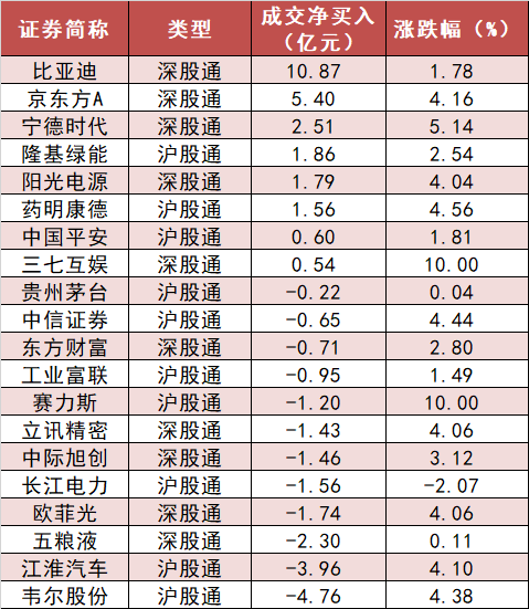 6、 沪股通和深股通前十大活跃股