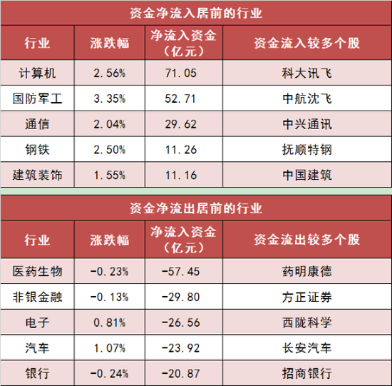 【13日资金路线图】两市主力资金净流出91亿元 计算机等行业实现净流入