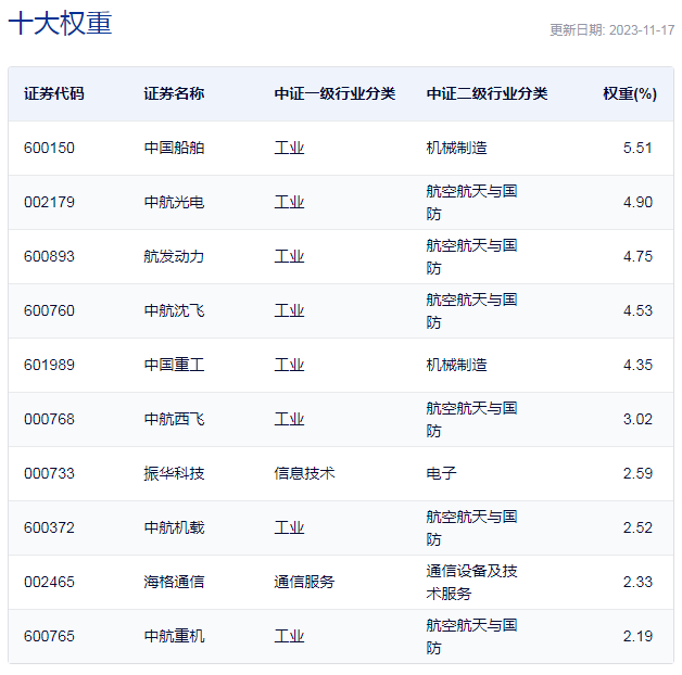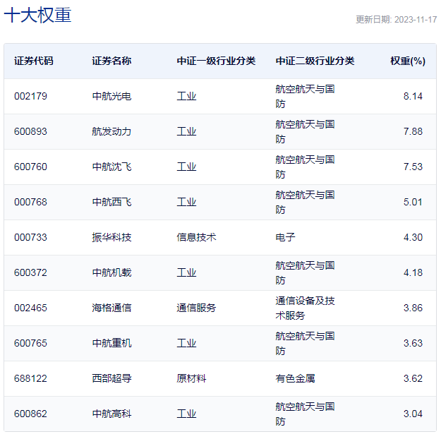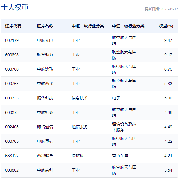 中证国防指数(指数代码:399973)是从隶属于十大军工集团公司旗下的上市公司以及为国家武装力量提供武器装备,或与军方有实际装备承制销售金额或签订合同的相关上市公司中,选取不超过50只股票作为样本股,以反映国防公司股票的走势。