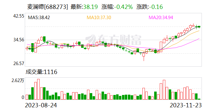 麦澜德11月23日发布消息,2023年11月21日-11月22日,公司接待华夏基金等多家机构调研,接待人员副总经理、董事会秘书 陈江宁,投资总监 焦靖,证券代表 倪清清,接待地点腾讯会议、麦澜德总部。