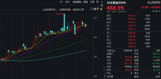 另外,不少黄金ETF追踪的黄金现货实盘合约AU99.99收益率,其基准为AU9999走势,如下图: