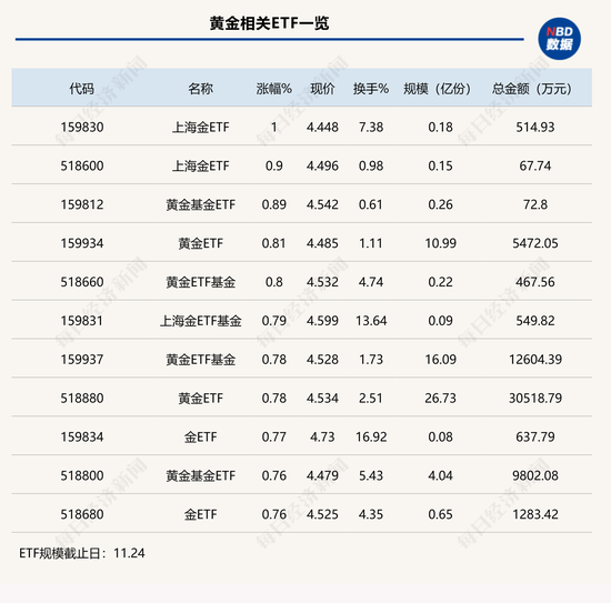 跟踪该指数的ETF有黄金ETF基金(159937)、黄金ETF基金(518800)、黄金ETF(159934)等。