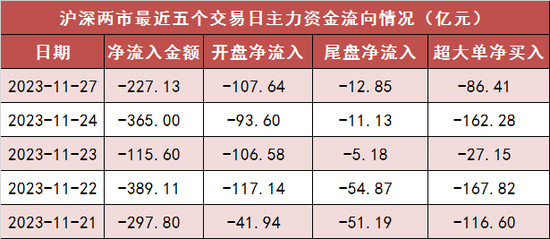 今日沪深两市主力资金开盘净流出107.64亿元,尾盘净流出12.85亿元,两市全天资金净流出227.13亿元。