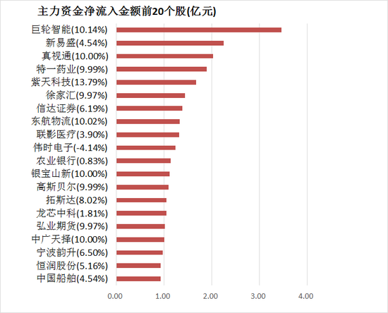 4、主力资金净流入居前20股