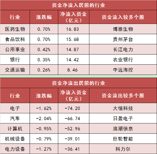 3、医药生物等行业实现净流入