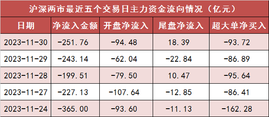今日沪深两市主力资金开盘净流出94.48亿元,尾盘净流入18.39亿元,两市全天资金净流出251.76亿元。